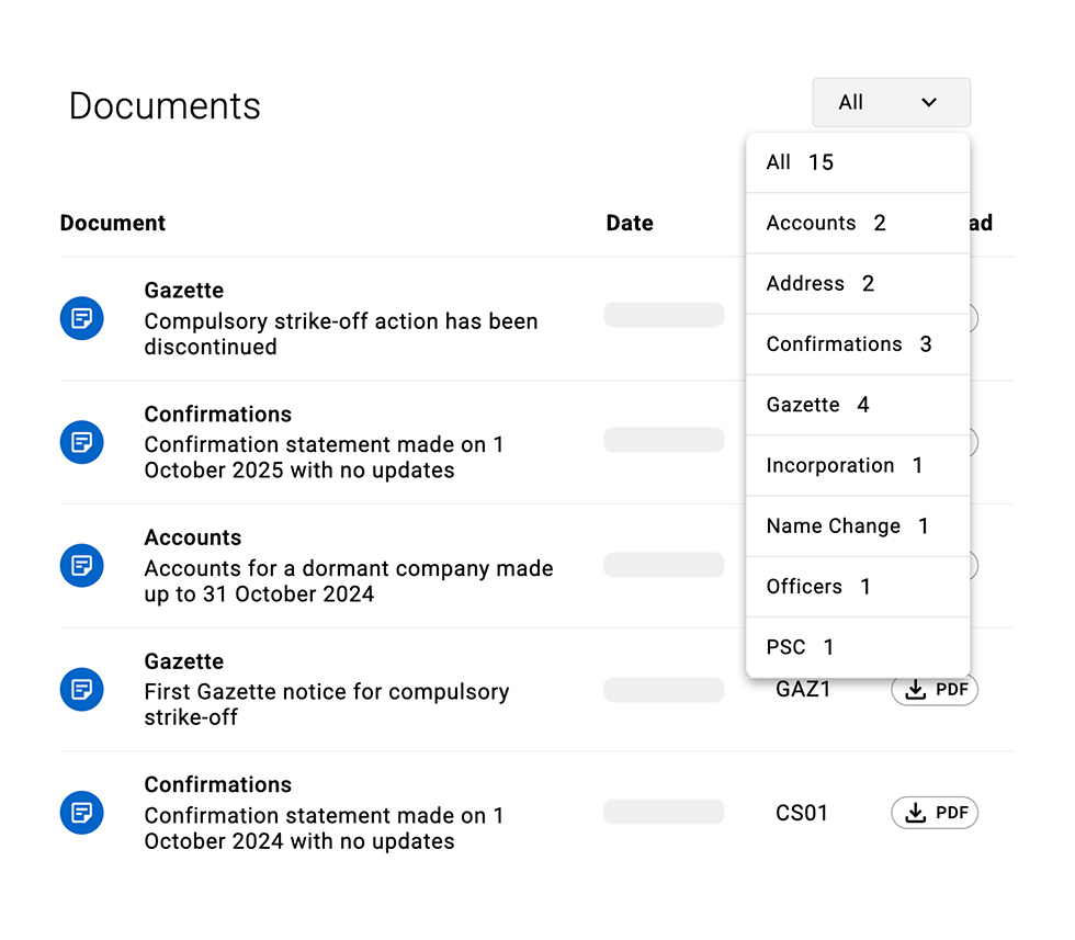 Track company information and activity using Document Filing activity. With instant download on over 120 million Official Companies House documents.