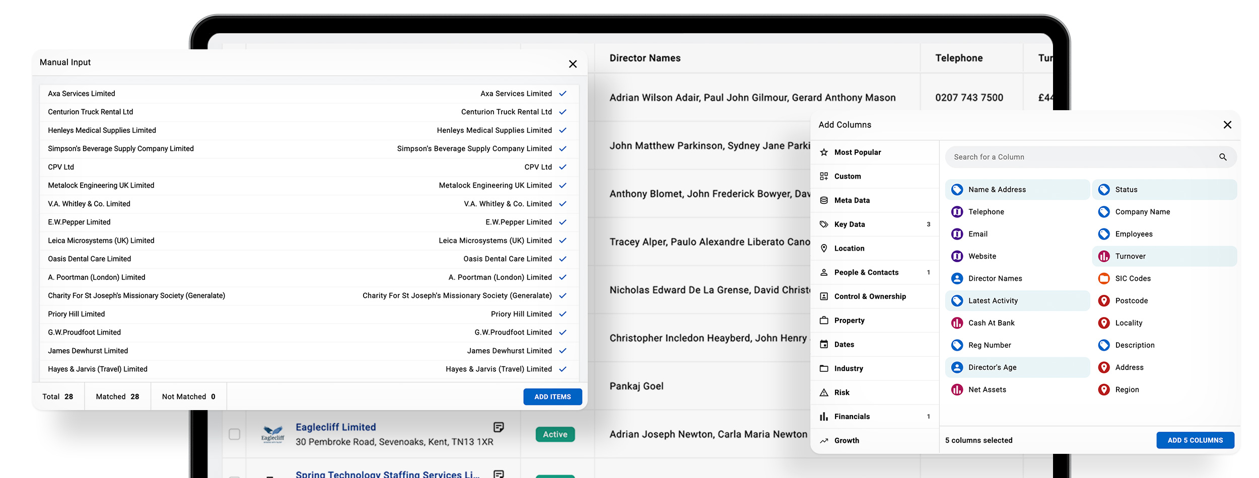 Powered by one of UK's largest company databases, Endole offers instant data cleansing and data appending solutions for your B2B lists – including Contacts, Financials, Key People, and more