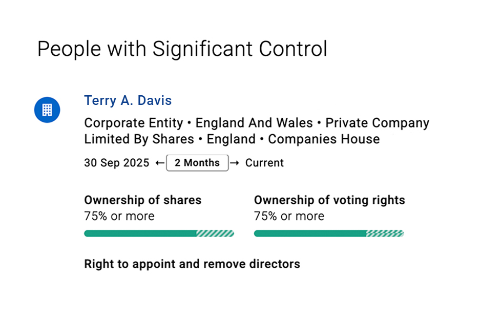Easily verify identities with official director names, roles, and appointment dates, and instantly discover every other company that they're connected with.