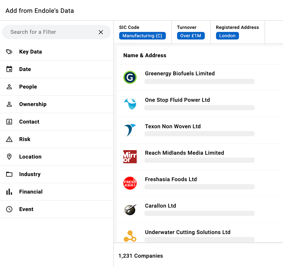 Complete your lists with authoritative data, spanning Key Financials, Directors, Risk, and more